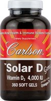 Solar D Gems provides the natural form of vitamin D3 for people who do not get enough from the sun. This is the only form our bodies make when our skin is exposed to the sun's rays. Vitamin D is important for bone health and immune system function.* RelateItems- Carlson Labs Solar D Gems Natural Vitamin D3, 4000 IU, 120 Softgels